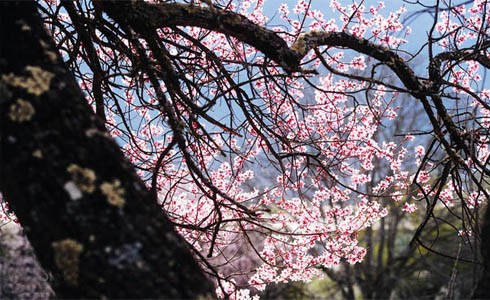 在林芝縣城東南方向約5公里處,有一片天然野生桃林,人們稱它為桃花溝。桃花溝三面環(huán)山,高處有水源,四周林木蔥蘢,終年碧綠蒼翠,澗有流水,清澈見底;溝內(nèi)野桃鱗次櫛比,林間鳥雀歡噪,既靜僻又幽雅,不失為一處難得的大自然樂園和桃果基地。桃花盛開在每年的3月,此時(shí)寒意未盡,嬌嫩的桃花在皚皚雪山下卻顯得格外的柔媚。冬天還未卸去銀裝,這里已然是花的海洋。那粉嫩的桃花如同姑娘臉色動(dòng)人的高原紅,成千上萬,各展其枝。桃花溝三面環(huán)山,溪水傾瀉而下,岸邊野桃勃勃。不遠(yuǎn)處的尼洋河溪畔,桃林與麥田交相呼應(yīng)。要觀賞如此美景,最好的起始點(diǎn)是從桃花村開始,經(jīng)桃花溝,東瓊村。途中,桃花、油菜花還有皚皚雪山交相輝映,讓人心醉其中。